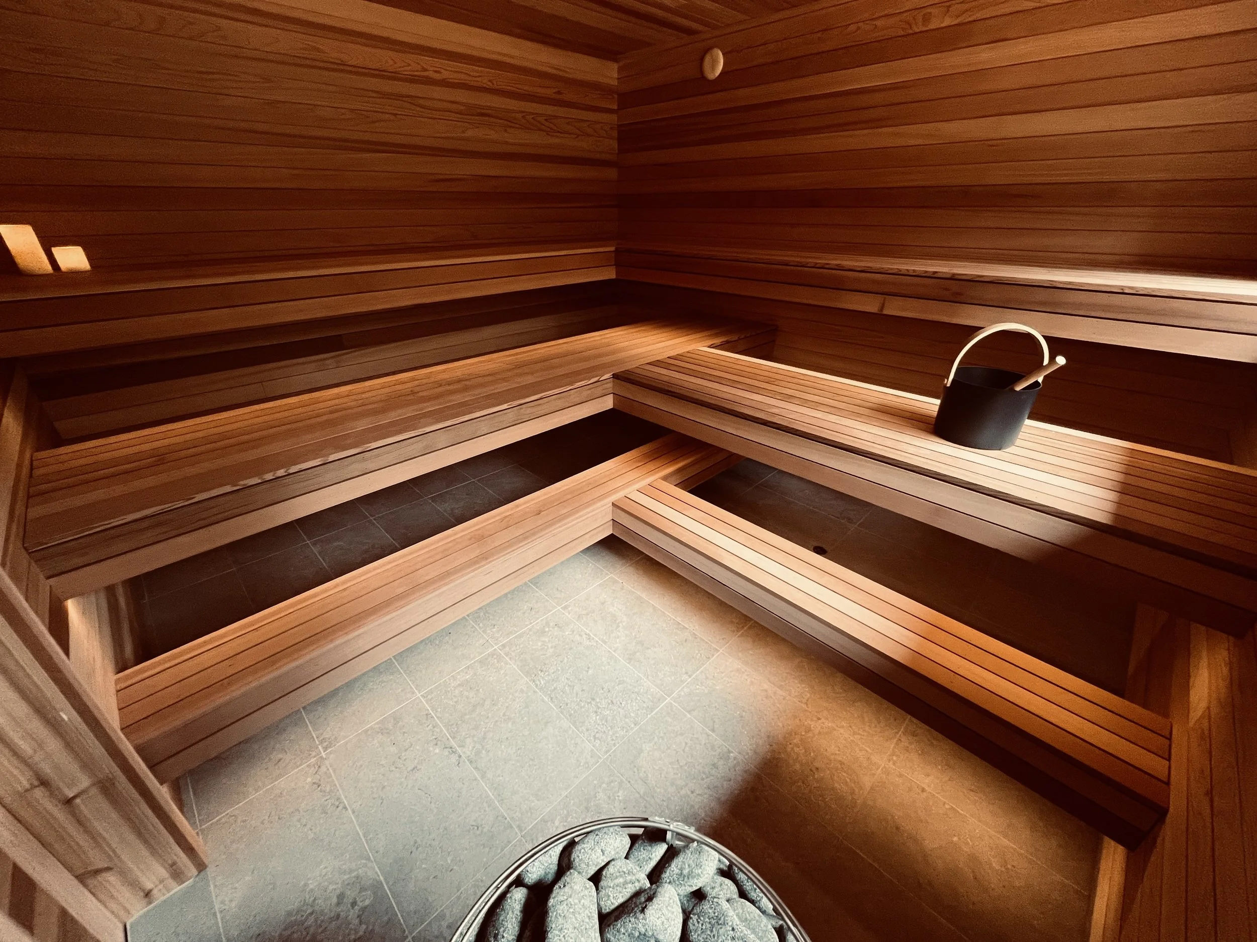 Brand new, 8-person cedar sauna with large picture window overlooking the forest.